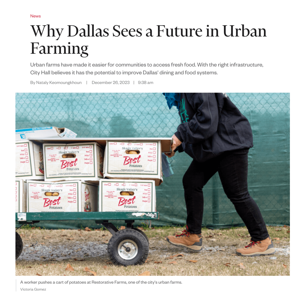On Tuesdays, workers from Restorative Farms wind through the streets of Fair Park until they reach the Midway, where their next harvest lies.